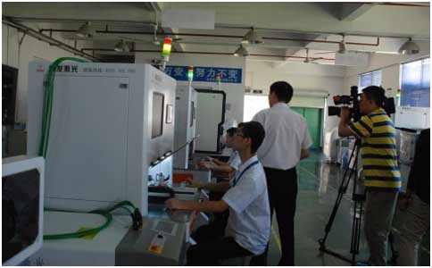 在鳳凰衛(wèi)視的杜編導(dǎo)熱情的訪問后,通發(fā)激光副董事長王小峰帶領(lǐng)杜編導(dǎo)以及他的同事參觀生產(chǎn)車間,樣品車間,研發(fā)車間,了解通發(fā)生產(chǎn)的激光焊接機(jī)、激光打標(biāo)機(jī)等。