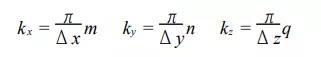 式中, m、n、q 為正整數; 而波矢 k 的三個分量為