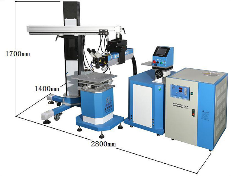 通發激光特大型模具TFL-200Ⅲ-DB吊臂激光焊機,幫您解決大型汽車模具修復難題,不要模具移動,吊臂激光頭操縱桿控制運動移動實現輕松激光修復20噸的模具,修復特大型模具利器。