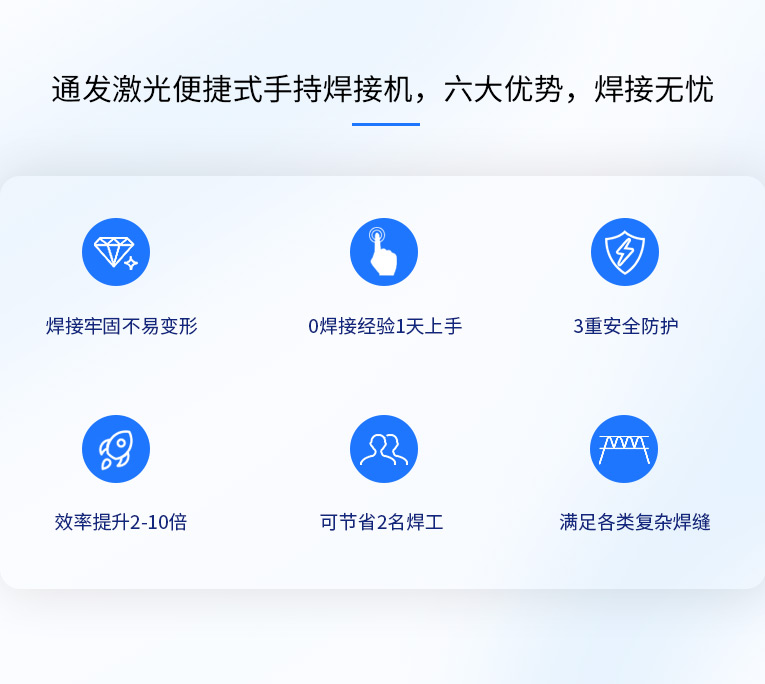 通發(fā)激光便捷式手持激光焊接機(jī),小巧便攜,方便移動(dòng),適合戶內(nèi)外外工地移動(dòng)焊接,是遠(yuǎn)距離焊接大工件的全新焊接利器。
