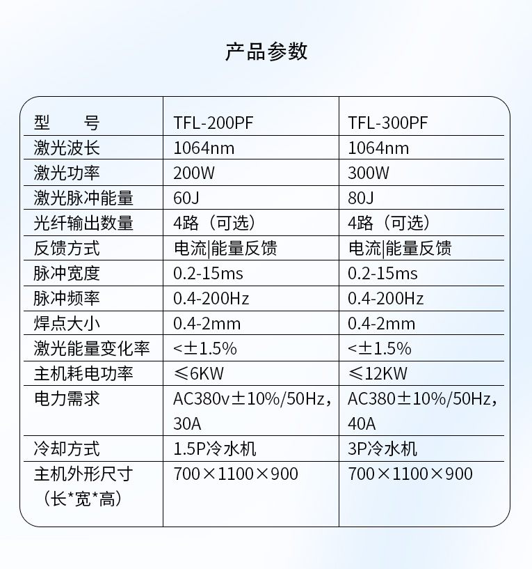 TFL-200PF/300PF光纖激光焊機(jī)是一款高穩(wěn)定性、中功率的光纖激光焊機(jī),滿足長(zhǎng)時(shí)間生產(chǎn)的需要。大功率激光電源,大功率散熱系統(tǒng)滿足24小時(shí)大批量生立。機(jī)身采用高強(qiáng)度結(jié)構(gòu),保證精度、性能穩(wěn)定。焊接控制系統(tǒng)是專為激光焊接度身定做的專業(yè)4軸控制系統(tǒng),穩(wěn)定性高,易學(xué)易懂易上手。擴(kuò)展性強(qiáng),可結(jié)合流水線、光電傳感器、氣動(dòng)夾具等組合進(jìn)行全自動(dòng)無(wú)人值守式加工。可進(jìn)行時(shí)間分光或能量分光,適合不同加工的場(chǎng)合的應(yīng)用,多工位加工應(yīng)用,可以廣泛應(yīng)用在點(diǎn)焊、連續(xù)焊及柔性加工需求行業(yè)等激光焊接。